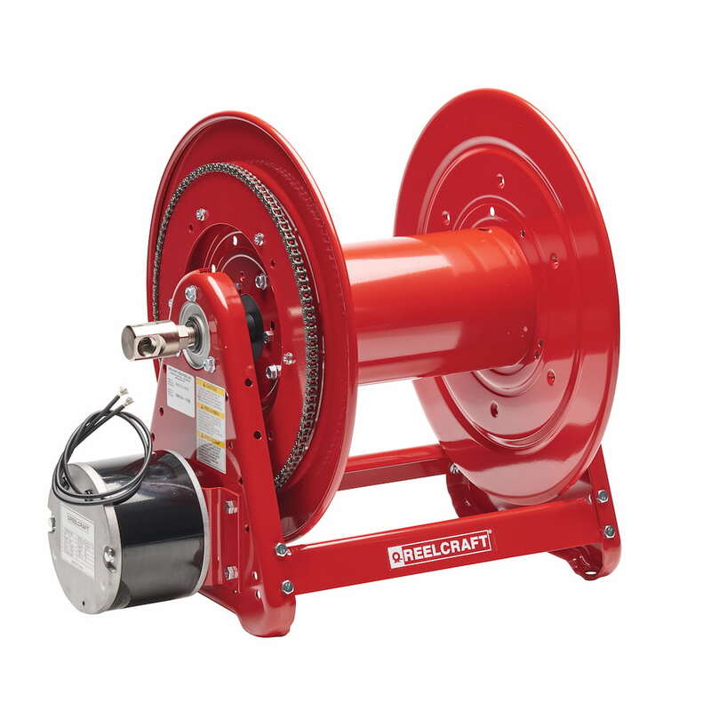 Reelcraft EA38112 M12D Hose Reel is a heavy-duty electric rewind reel built to handle demanding pressure washing and industrial applications. Designed for use with 1/2" hose up to 200', this premium-duty reel features a full flow swivel, all-bolted steel construction, and corrosion-resistant powder-coated components. Its 12V DC motor provides reliable powered rewind, while the integrated gooseneck allows for easy hose installation.