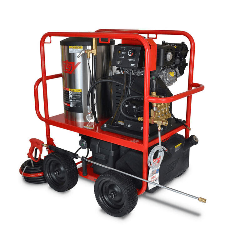 Compact and Portable 4 GPM Model with Honda GX390 Engine, 1.110-099.0, Oil-Fired, Belt-Drive, Stainless Steel Coil, and Flat-Free Tires. Electric-Start Model – Battery Required (Not Supplied).